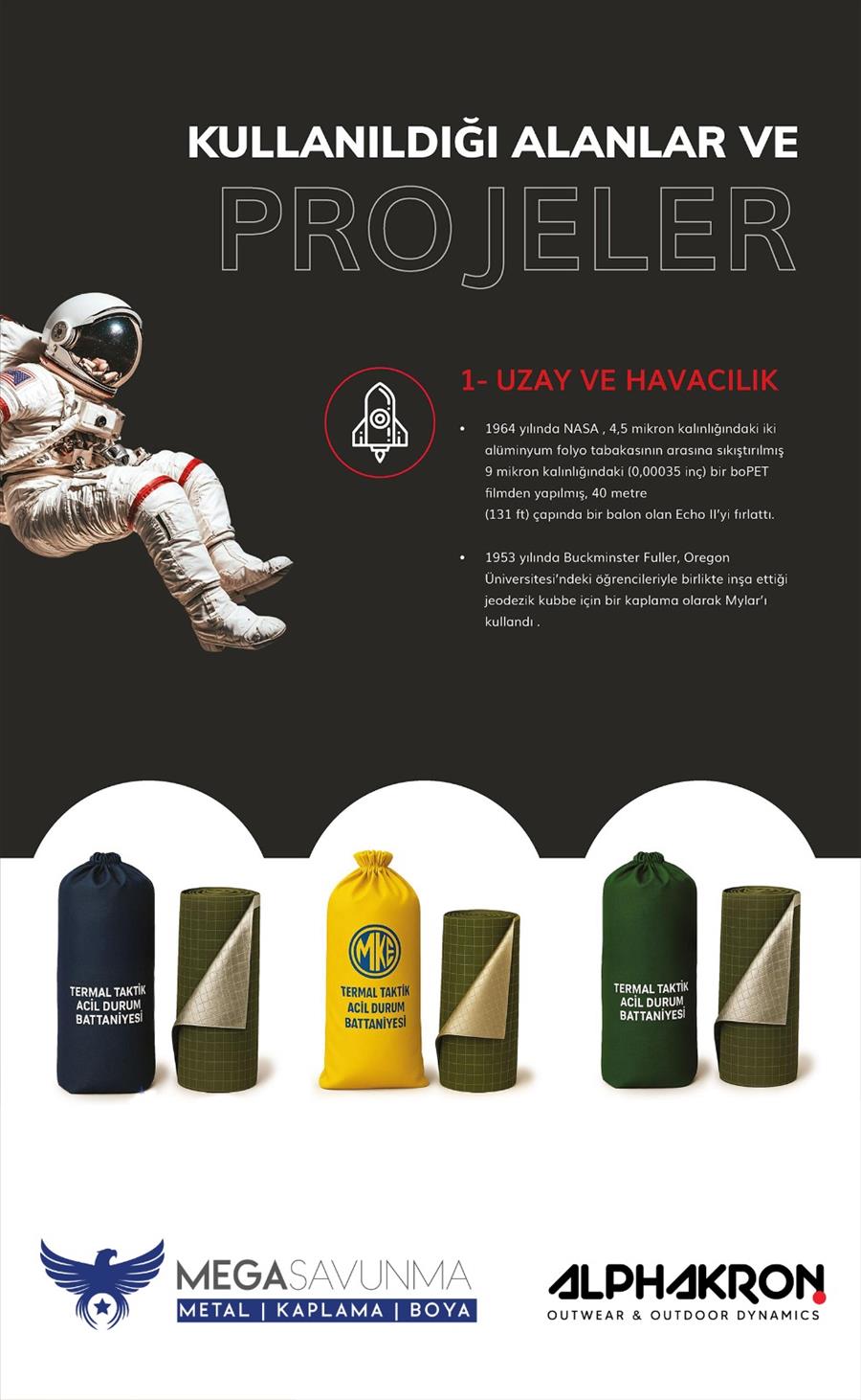 Radyant ısı yalıtımı, Güneş, ısı, rüzgar, buhar, su bariyeri, Yüksek mukavemet, yüksek yırtılma direnci, Hafif, kullanıcı dostu,
